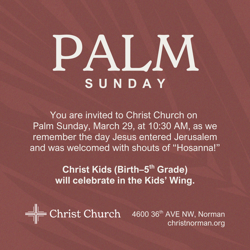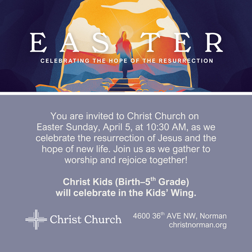 Easter at Christ Church is coming soon! Check out the service times here: christnorman.org/easter. Let me know if you’re planning to attend. I’d love to sit with you.